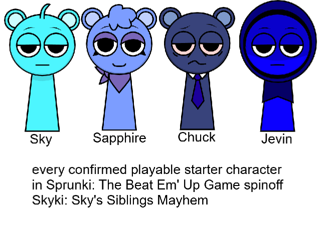 info: Skyki: Sky's Siblings Mayhem is a real Sprunki: The Beat Em' Up Game spinoff created in OpenBOR and it was based on Incredibox mod Sprunki by Nyankobflol and Sky's Siblings from Local_Vineria. it was created by Dexter_Code Productions and Local_Vineria as a lore expansion for Sprunki: The Beat Em' Up Game and it was meant to destroy Elsagate and expose Elsagate to the public.